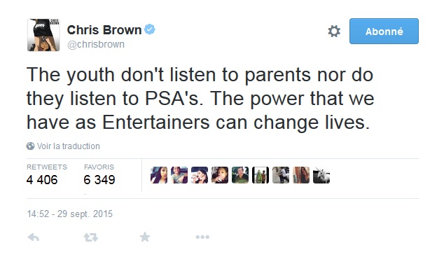 Sur Twitter, Breezy s'est ainsi excusé pour ses actions passées et s'est également proposé pour lutter contre les violences faites aux femmes :