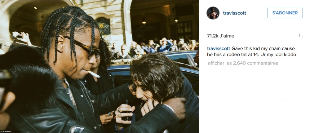 Présent à Paris pour assister à la Fashion Week, Travi$ Scott a fait le bonheur d'un de ses fans.