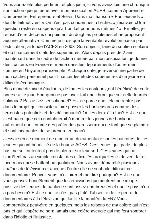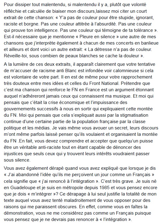 Dans un billet, l'intellectuel avait pris à partis le rappeur du 9.4, l'accusant de "combattre le racisme avec les règles du racisme".