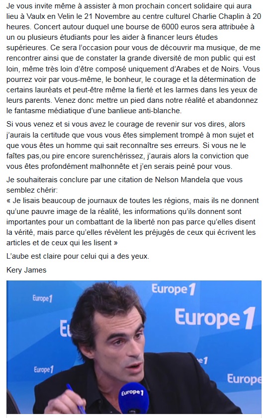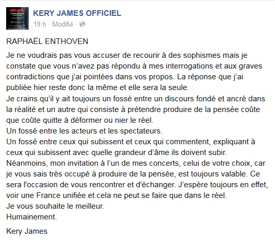 Sans réponse, Kery James a posté aussi ce message