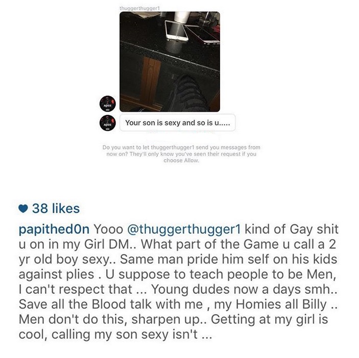 D'après un screenshot qui circule dans la presse américaine, Thuga Thuga aurait complimenté un enfant sur le compte Instagram de sa mère.