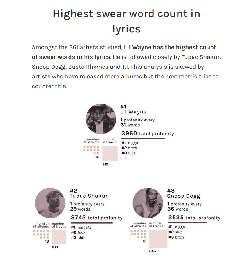 Lil Wayne, Snoop Dogg, Chief Keef, A$AP Rocky, T.I. ou encore 2pac, ils font tous partie d'une étude sur la vulgarité des rappeurs.