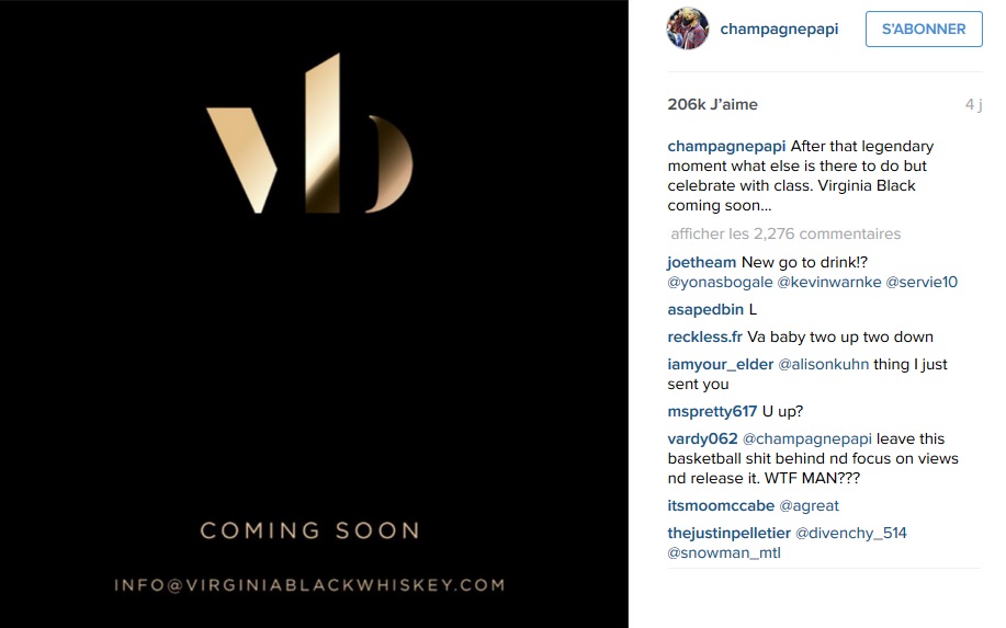Comme annoncé sur instagram, le Canadien sortira bientôt le "Virginia Black Whiskey".