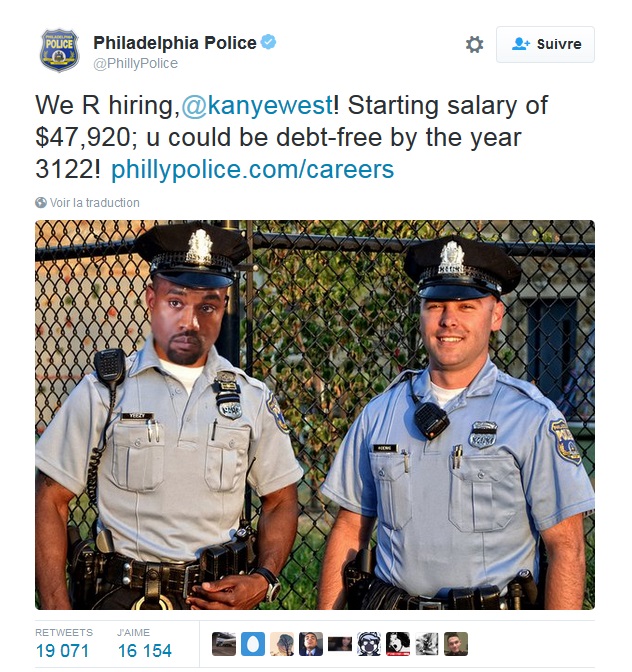Dans son malheur, notre bon vieux Kanye a néanmoins reçu le soutien de la police de Philadelphie.