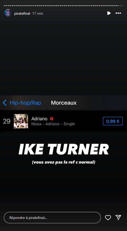 Mais ce n’est pas cette polémique qui a fait le plus réagir Booba dernièrement. C’est plutôt les premiers chiffres de "Adriano". En story sur son compte Instagram, le rappeur a publié un classement montrant que le morceau de Niska n’arrivait qu’à la 29ème position. Plus piquant encore : le morceau "Dolce Camara", disponible depuis plus d’un an, affiche plus d’écoutes qu’"Adriano" sur les sept derniers jours en se plaçant 10e.