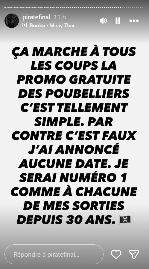 La réaction est arrivée du côté de Booba avec une story bien sombre :