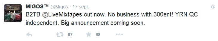 Migos a en effet décidé de ne plus collaborer avec le label 300 Entertainment.