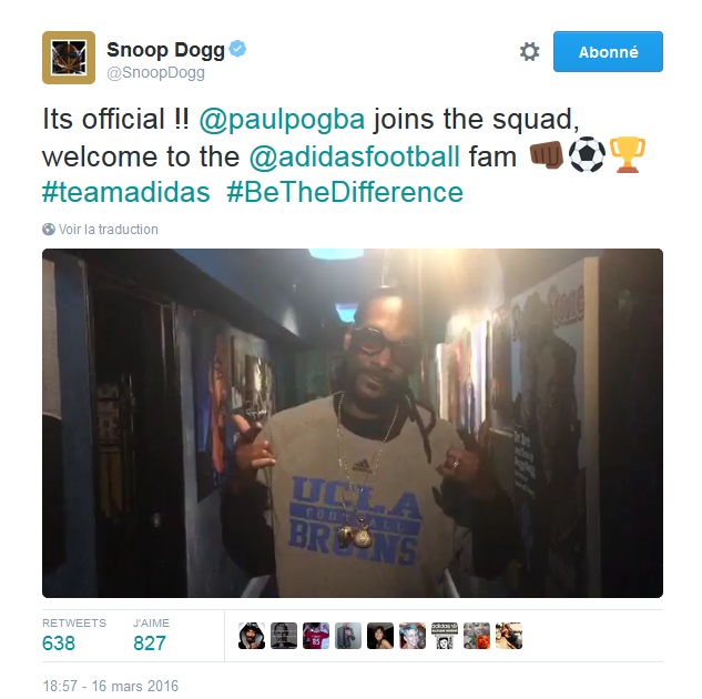 Le rappeur avait également souhaité la bienvenue au footballeur Paul Pogba chez l'équipementier sportif avec une sympathique vidéo sur Twitter :