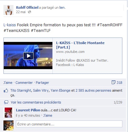 Mate le nouveau clip de L-Kaïss "L'étoile montante". Sur facebook, Rohff l'a présenté comme affilié à son label Foolek Empire.