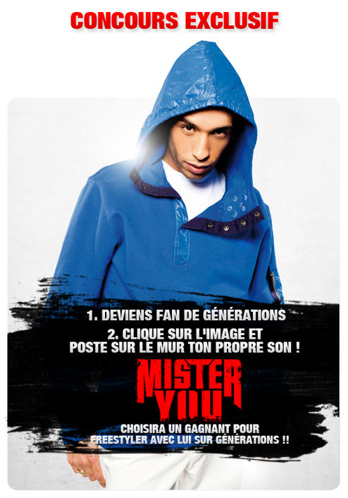 MISTER YOU choisira sa vidéo préférée et invitera le gagnant pour un freestyle en direct sur Générations en janvier 2011, lors d'une émission spéciale Mister You EN DIRECT sur l'antenne et le site internet www.generationsfm.com